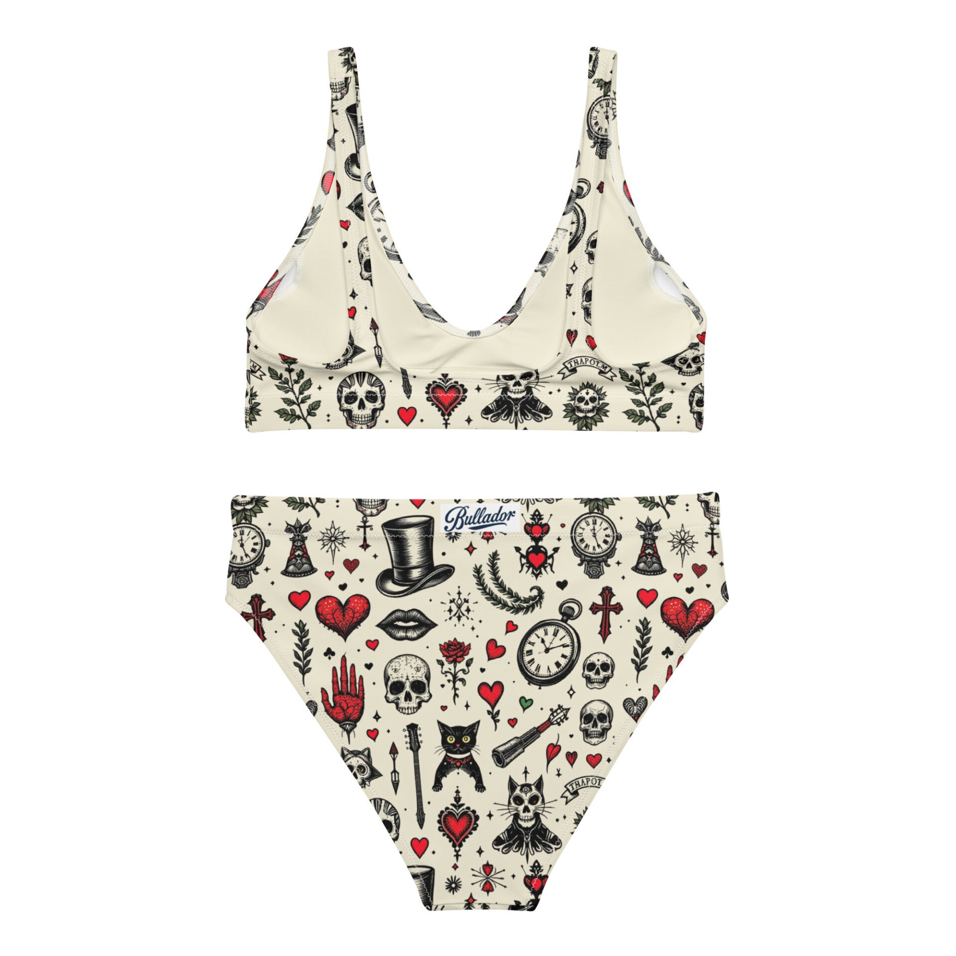 BIKINI A FASCIA CON VITA ALTA con stampa Tatoo Old School