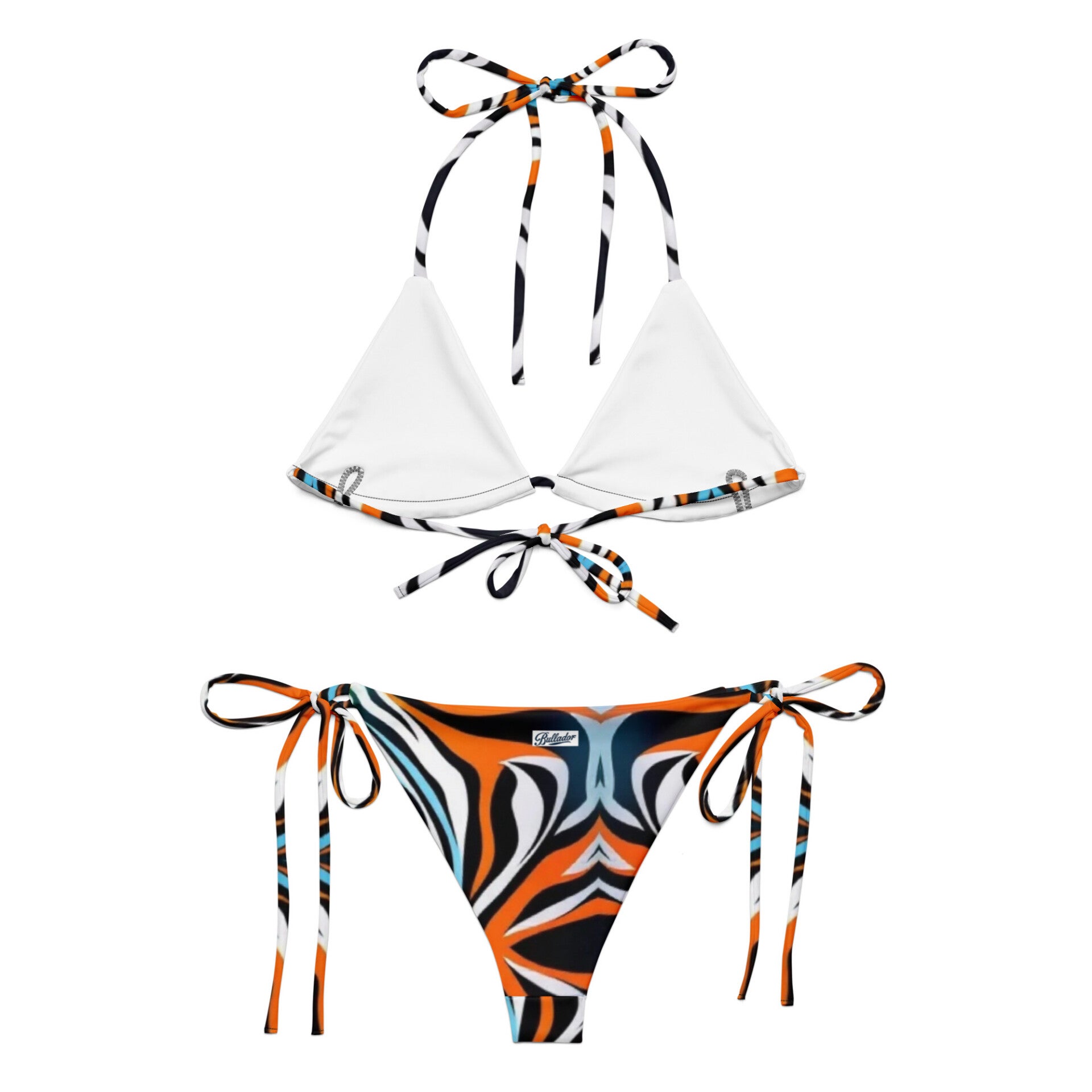 Preparati per l'estate con questo bikini a due strati con laccetti in tessuto riciclato con stampa all over e UPF 50+. Realizzato in morbido ed elasticizzato poliestere riciclato, questo completo eco-friendly è un costume da bagno indispensabile e perfetto da abbinare ad altri capi! La combinazione di comfort e versatilità lo rende un must-have per qualsiasi collezione di costumi da bagno.