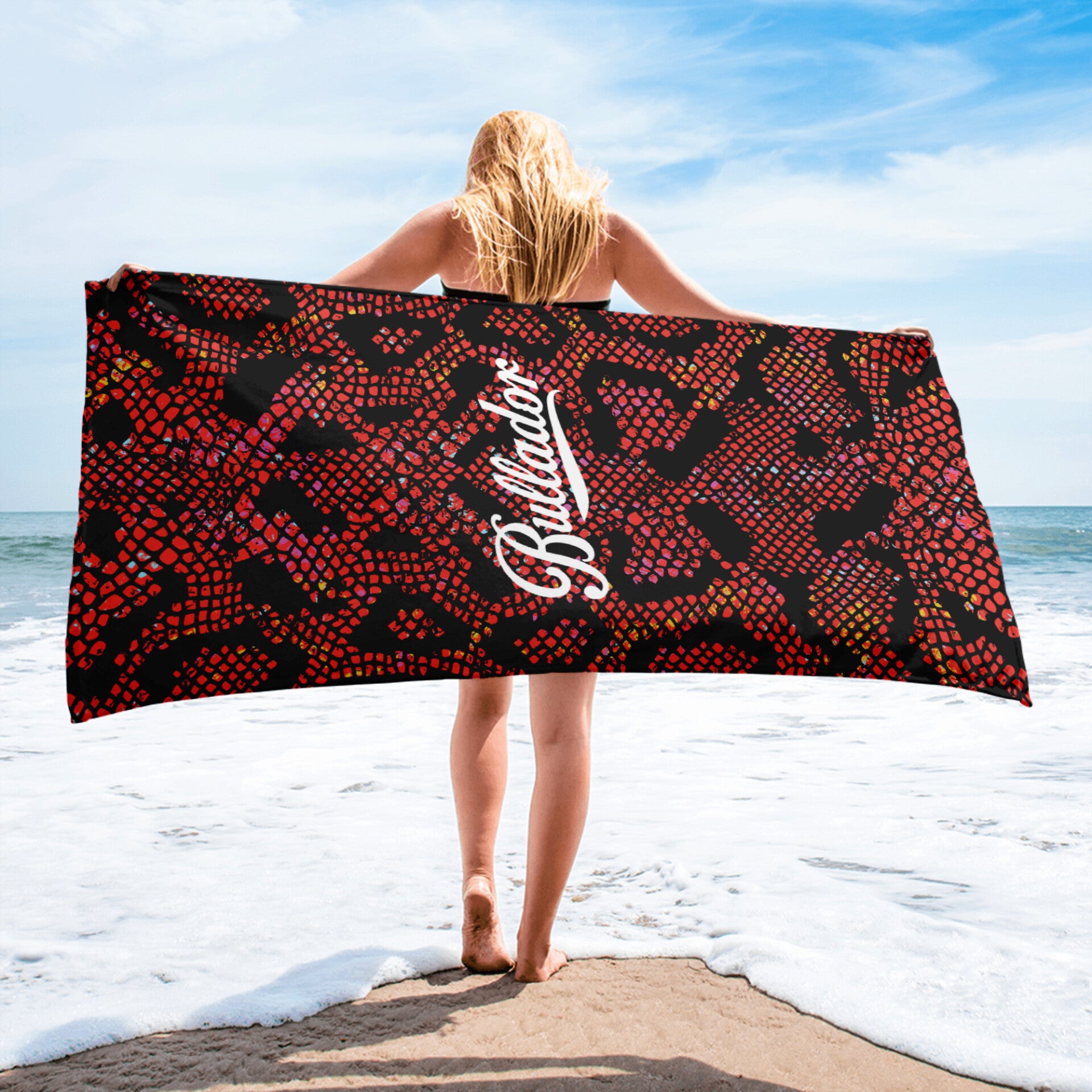 TELO MARE CON STAMPA PITONE ROSSO